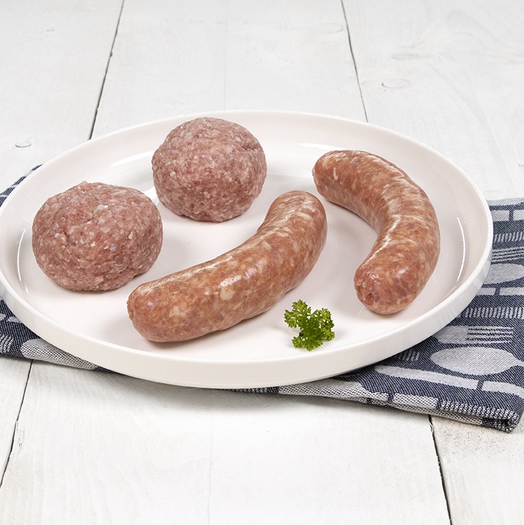 2 varkens saucijzen en 2 gehaktballen