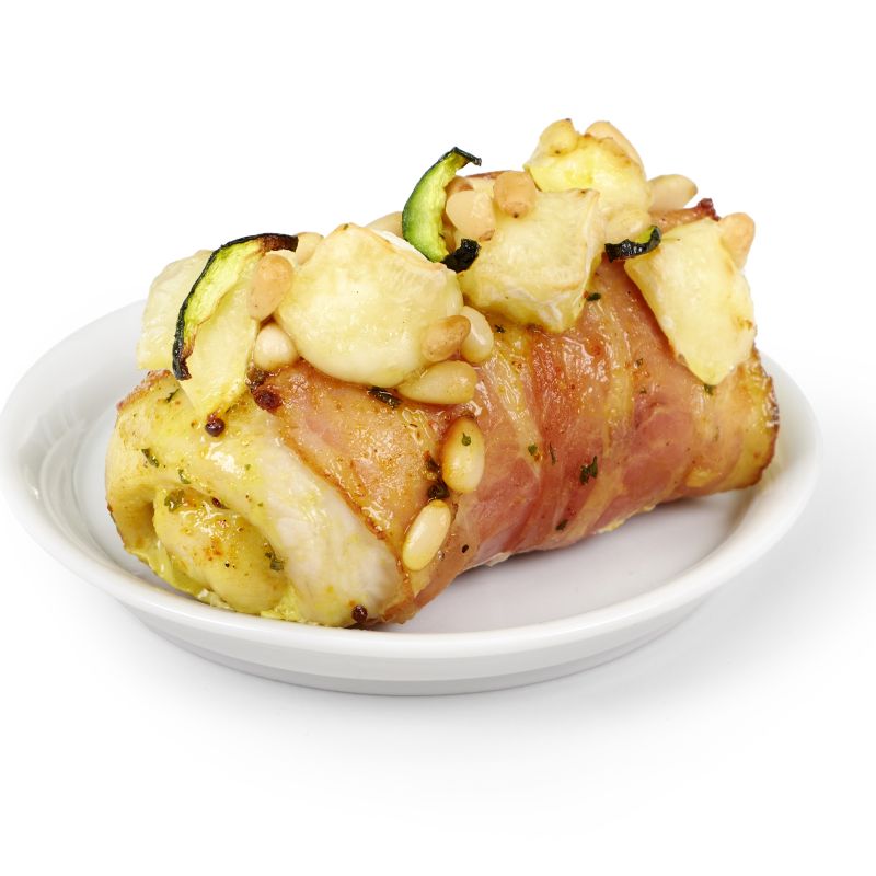 Kipfilet met spek ananas brie en pijnboompitjes,